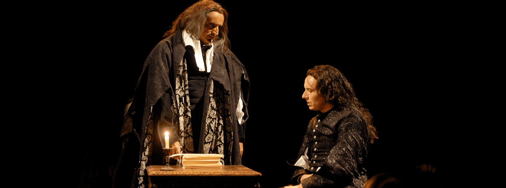 Le 24 septembre 1647, les deux philosophes les plus célèbres de leur temps se sont rencontrés à huis clos durant plusieurs heures, au couvent des Minimes à Paris. De cet entretien historique, rien n’a filtré, sinon une ou deux courtes notes jetées sur le papier par l’un et l’autre. Jean-Claude Brisville a imaginé librement la conversation qu’ont pu avoir ces deux hommes, à l’opposé l’un de l’autre, et qui se découvrent progressivement. Descartes, 51 ans, rationaliste, réaliste, pragmatique, grand voyageur, bon vivant. Pascal, 24 ans, mystique ardent, intransigeant, malade, tourmenté, exaltant la souffrance et la mort. Après Le Souper, Daniel Mesguich (Descartes) et William Mesguich (Pascal) ouvrent un nouveau duel. Une joute pleine d’esprit entre deux philosophes exceptionnels, deux hommes qui ont chacun une vision particulière du monde. Une rencontre qui éclaire avec intelligence et acuité notre histoire la plus contemporaine…