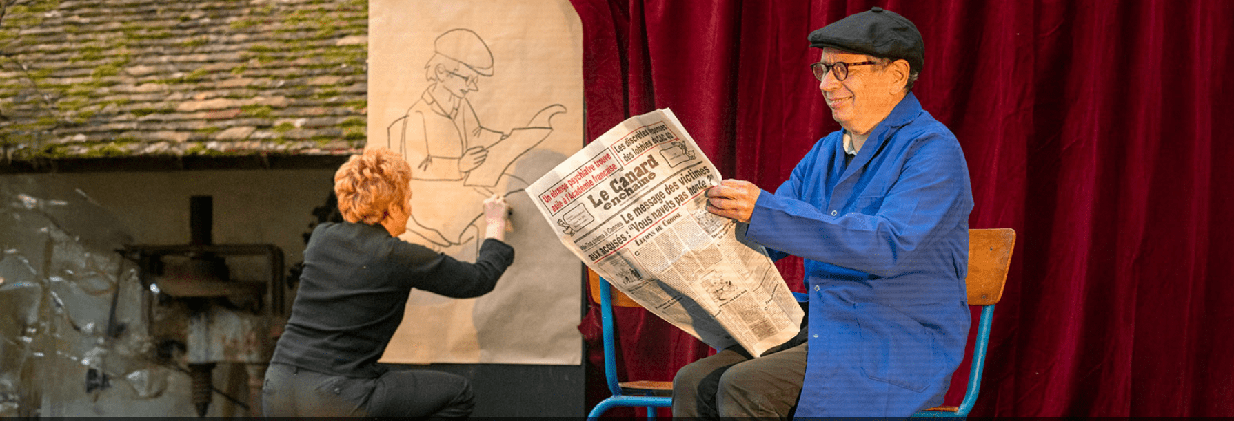 Leurs routes se sont croisées il y a 35 ans, en pleine campagne viticole. Un beau matin, Anna, fille de vignerons, prend en stop Hervé, jeune étudiant à la recherche d’un premier boulot. Ça tombe bien, le domaine familial manque de bras pour les vendanges. Les premières récoltes passées, Anna et Hervé fraternisent. Si elle repart vivre sa vie artistique à Paris, lui revient chaque année vendanger, s’enracine dans le village, s’installe au domaine. Jusqu’au jour où l’exploitation est menacée par le rachat d’une multinationale. Le retour d’Anna chez ses parents marque alors la fin d’un cycle, ouvre celui de l’introspection. Comment quitter et retrouver ses racines ? Comment confronter ses espoirs d’enfant à la réalité de sa vie d’adulte ? Sur l’estrade installée, Delphine Lanza et Olivier Broche (un ancien des Deschiens, actuellement à l’affiche du dernier spectacle de François Morel, Art) interprètent avec justesse et tendresse la rencontre d’Anne et d’Hervé, leurs désirs, leurs destins contrariés.
